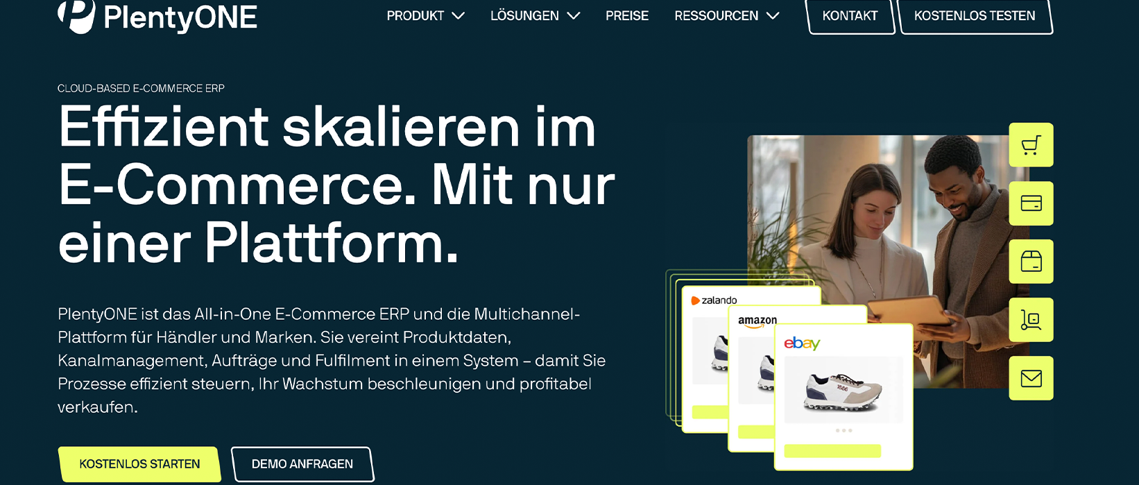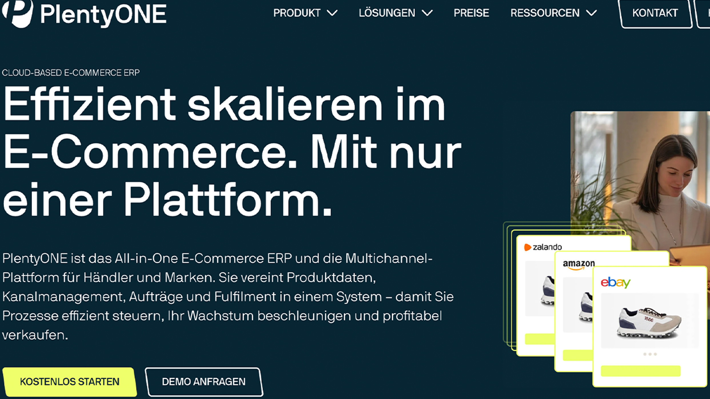 PlentyONE ist eines der bekanntesten All-in-One-Systeme im deutschen E-Commerce. Es vereint PIM, Warenwirtschaft, Bestellverwaltung und Multichannel-Anbindung in einer Plattform.
